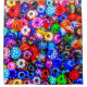 Perles colorées et ornementales en forme de toroïdes en vrac. Simulation de peinture à l'huile à partir d'une photographie. rideau de douche pour décorer votre salle de bain pour le plaisir et la bonne humeur.