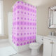 Rideau de douche gai avec mon design vectoriel de jolies petites fleurs roses et violettes et rayures roses.
