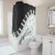 Clavier noir et blanc classique avec un flair incurvé. Des notes musicales rajoutées ajoutent un aspect festif.