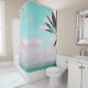 Rideaux De Douche Plage tropicale, vue d'océan, nuages roses, paume