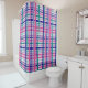 Vous cherchez un rideau de douche aux couleurs vives ? Ce rideau de douche est orné d'une motif en plaid aux rayures roses, violettes, turquoises et bleu marine sur un arrière - plan blanc.
