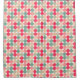 Un rideau de douche avec une belle motif reproductrice faite de taches dans une palette de cinq couleurs différentes.