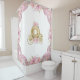 rideau de douche princesse rose et or avec jolie calèche à fleurs dorées sur un bel arrière - plan floral rose et doré. Ce rideau de douche princess est facilement customisé avec un nom ou le texte de votre choix dans le style de police que vous préférez. Vous pouvez également changer la couleur arrière - plan sur ce joli rideau de douche princess.