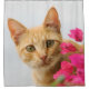 Un chaton tigré rouge curieux vous observe, scrutant par derrière un bougainvilla fleurissant avec des yeux de soulèvement, portrait. Ce rideau en douche est une idée de cadeau pour des amoureux de les chats. Un minou mignon de gingembre photographié par Katho Menden. http://www.zazzle.com/kathom_photo