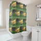Ce rideau en douche comporte une poule de couleur chamois d'orpington flânant par une vieille brouette à une ferme du Connecticut.