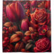 Ce design captivant présente un agencement luxuriant de fleurs et de feuillage, orné de fines gouttes de pluie. Les fleurs, y compris les tulipes et les roses, sont dans une palette de couleurs riche dominée par des tons de rouge, rose et orange. Les pétales et les feuilles sont denses, créant une composition dynamique et dynamique. Les gouttes de pluie reflètent la lumière, ajoutant un effet étincelant qui améliore la qualité de vie du design. Les détails complexes des pétales et des feuilles, associés aux couleurs vives, créent une oeuvre d'art visuellement frappante et élégante. Ce design saisit la beauté de la nature dans une composition visuellement étonnante et harmonieuse, parfaite pour ajouter une touche de tranquillité et de couleur à tout espace.