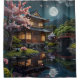 Ce paysage japonais serein se déroule autour d'un étang tranquille, où les vagues douces reflètent les montagnes majestueuses au loin. De délicates fleurs roses encadrent la scène, leurs couleurs vibrantes contrastant magnifiquement avec les teintes douces de l'eau. Un pont traditionnel en bois arche gracieusement au-dessus de l'étang, invitant à la contemplation et à l'harmonie avec la nature. Le décor de montagnes vertigineuses ajoute un sentiment de grandeur, tandis que les cerisiers en fleurs apportent un air de beauté éphémère. Ce cadre pittoresque saisit l'essence de la tranquillité et la nature éphémère de la vie, évoquant une profonde appréciation de la simplicité de la nature.