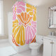 Un joli motif floral orange rose or dans un rideau de douche de style boho 70 rétro.
