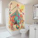 Le rétro rideau en douche de thème de cirque de style comporte une tente colorée de chapiteau avec des acrobates, un clown de chien, ours montant une bicyclette, et une souris et un éléphant équilibrant sur des boules !