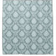 A vintage style decorative damask surface pattern influenced by rococo classical design in duck egg blue color detail on a teal background.