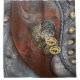 La combinaison des graphismes, des éléments numériques et des photos de produits en cuir est devenue ce design steampunk