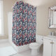 Rideaux De Douche Rouge, fleurs blanches sur bleu.