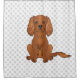 Dessin original de Destei illustrant une jolie couleur de rubis Cavalier King Charles Spaniel chien de race assis. L'arrière - plan a un motif d'empreintes de pattes de chien gris.