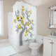 Rideaux De Douche Sakura jaune gris cerisier fleurs inséparables
