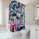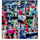 Scooter Paradise. Mélange de barres de poignée colorées de scooters pour enfants exposés en abondance sur le marché en plein air. Simulation de peinture à l'huile à partir d'une photographie. rideau de douche pour décorer votre salle de bain pour le plaisir et la bonne humeur.