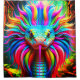 Ce rideau de douche a un serpent arc-en-ciel dessus.