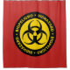 Biodanger - Biopeligro - rideau de douche rouge avec panneau d'avertissement de danger biologique jaune et noir.