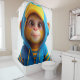 Ce rideau de douche a un mignon singe dessus,