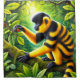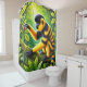 Ce rideau de douche a un singe rayé unique.