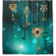 Or, clés antiques avec engrenages et cadrans accrochés sur chaînes dorées sur arrière - plan vert lumineux.