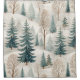 A seamless pattern shower curtain depicting a serene snowy forest scene with gently rolling hills blanketed in snow. The design features a variety of trees — tall evergreen conifers in deep green and teal tones, alongside delicate bare trees with fine brown branches. Soft white snowflakes drift across the light, creamy background, creating a calm and dreamy winter mood. Ideal for nature lovers, winter enthusiasts, and anyone who appreciates peaceful, handcrafted art inspired by snowy landscapes.