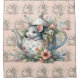Rideaux De Douche Souris mignonne en théière florale Illustration