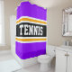 Ce design sportif et sportif présente un texte TENNIS audacieux à l'intérieur d'une large bande noire surlignée avec deux bandes de course blanches et jaunes contre des bandes extérieures violettes. Le texte de cette conception peut être personnalisé.