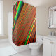 This shower curtain has an artsy striped design on it.
