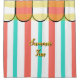 Summetime cabana inspired. Coral and turquoise vertical stripes against white background. Pastel yellow watercolor stripes across scalloped white and coral top. Designs by TamiraZDesigns.