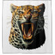 Fierce Puissant Leopard Roaring portrait d'attaque gros avec de longs crocs. Illustration vectorielle originale isolée sur blanc Copyright BluedarkArt TheChameleonArt.