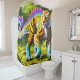 Ce rideau de douche a un dinosaure tigre dessus.
