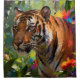 Un beau tigre se dresse dans une jungle verte, représenté dans un style d'art éclaboussé, fait un beau rideau de douche sur le thème de la faune. Style d'art moderne, parfait pour tous ceux qui aiment les grands félins, les animaux et la nature.