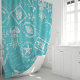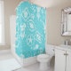 Promenez-vous dans une aventure balnéaire avec ce rideau de douche turquoise d'inspiration vintage. Le design présente des timbres nautiques en décadence, présentant des tortues de mer, des ancres, des étoiles de mer et des coquillages dans des tons turquoise chauds, rappelant les cartes postales d'une époque révolue. L'arrière - plan turquoise crée une atmosphère relaxante et accueillante pour votre salle de bain.