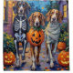 Les chansons adorables Treeing Walker Coonhounds, habillées de costumes d'Halloween ludiques, portent des seaux citrouilles tout en faisant des tours ou en traitant sous le ciel illuminé par la lune. Ce design festif met en valeur le manteau tricolore de la race, son attitude vigilante et sa personnalité aventureuse, capturant parfaitement l’atmosphère éffrayante et amusante de la nuit d’Halloween. Une charmante fête pour les amateurs de Treeing Walker Coonhound, les amateurs de chiens et les amateurs d'Halloween.