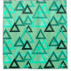 Ce rideau de douche a des triangles épars de plusieurs tailles dans les tons vert de mer.