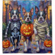 Les adorables Boston Terriers habillés de costumes d'Halloween ludiques portent des seaux citrouilles tout en faisant des tours ou en traitant sous le ciel illuminé par la lune. Ce design festif met en valeur le manteau tuxedo de la race, les grands yeux expressifs et la personnalité ludique, capturant parfaitement l'atmosphère éffrayante et amusante de la nuit d'Halloween. Une charmante fête pour les amoureux de les chiens comme pour les fans d'Halloween.