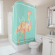 Rideau de douche flamand à motif flamand à motifs d'ananas, avec un arrière - plan vert d'eau. Ajoutez cette touche de fantaisie à votre amusante salle de bain tropicale à thème !
