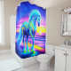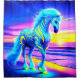 Ce rideau de douche a une licorne néon dessus.