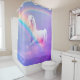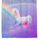 Unicorne blanche, ciel arc-en-ciel et ciel violet avec nuages roses.