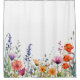 This vibrant watercolor wildflowers pattern shower curtain showcases a pattern with a lively mix of purple, orange, and red jewel-toned blooms.