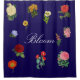 Vintage Floral Shower Curtain. Bloom Word on Blue, Flower Shower Curtain. Vintage and elegant, gorgeous large floral blooms stand out on the blue curtain with the word 'bloom' - can be changed using the template or removed if you choose customize further.