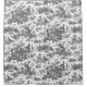 Ce motif de toile de jouy vintage restauré datant d'environ 1780 présente des scènes de la vie agricole rustique joyeuse comprenant des animaux, des ruines antiques, des cottages et des paysans engagés dans le travail et jouer en noir sur arrière - plan blanc.