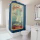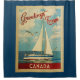Le design nautique vintage de Voyage du Canada présente un bateau naviguant sur l'eau avec des mouettes et un ciel bleu rempli de somptueux nuages blancs.