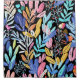 Un motif floral coloré avec des feuilles tropicaux et des fleurs, créant un design dynamique et animé