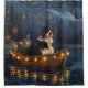 Jetez un coup d'oeil à la magie de la saison des Fêtes avec cette illustration magnifiquement détaillée, montrant un chien fier assis dans un bateau à la décoration festive, glissant à travers un lac serein de Noël. Les lumières scintillantes des pins voisins se reflètent dans l'eau, projetant une lumière chaude et festive qui renforce l'ambiance cosy. Des ornements pendent des côtés du bateau, tandis que des lanternes brillantes éclairent le chemin, créant une scène qui capture l'essence véritable de la chaleur et de la joie de Noël. Cette oeuvre nostalgique apporte une touche de magie de vacances à tout espace, parfait pour ceux qui chérissent l'esprit de la saison.