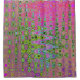 These shower curtains feature a Wavy Abstract Green and Red Retro Mosaic Zigzags Design with Purple, Lime Green, Aqua and Black Accents.