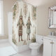 A charming pattern shower curtain featuring two whimsical woodland pixies illustrated in a soft, vintage watercolor style. This design blends fantasy, nature, and old-world charm. The muted earthy palette of greens, creams, and browns creates an enchanting, storybook-like feel perfect for holiday, cottagecore vibes, and magical-themed. Ideal for Christmas, winter gifting, fairy-tale lovers, fantasy enthusiasts, and handmade enthusiasts.