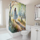 Rideaux De Douche Whimsical Girl Dancing Through Birch Forest
