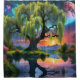 Willow tree under a Pleine lune and a colorful Starry sky sky at Sunset AI ART CRÉÉ PAR MINX267