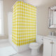 Rideau en douche de motif de guingan dans jaune citron. Ajoutez une éclaboussure de conception moderne à votre salle de bains avec ce rideau lavable en bain/douche de polyester de machine. 71" x 71" (ajustements la plupart des unités de douche/bain). Conceptions uniques dans des couleurs contemporaines. Impression polychrome vive.